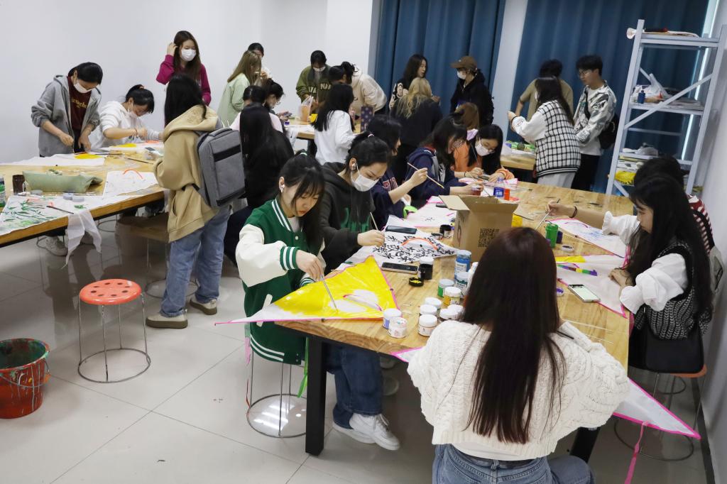 选购多彩颜料、准备足量风筝、选择合适场地……活动负责人、美术学专业2020(3)班郭可莹所在的学生会部门早在半个月前就开始为活动做准备。“春天正是放风筝的好时节,我们想通过画风筝、放风筝为同学们提供一个学习交流、展示自己的平台,用创意拉近彼此距离,让灵感‘飞’上蓝天。”