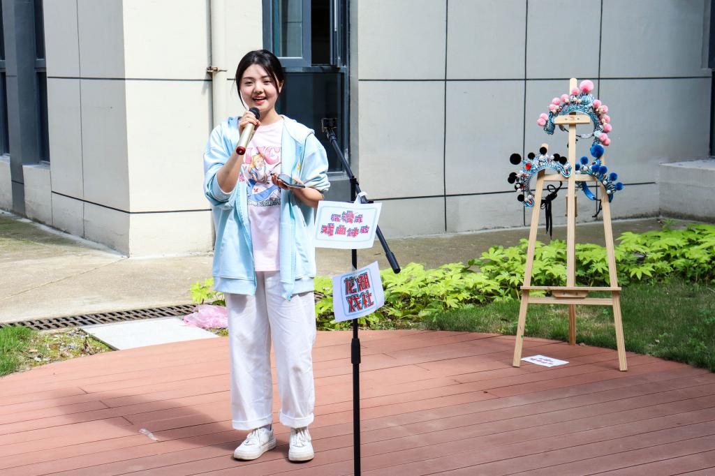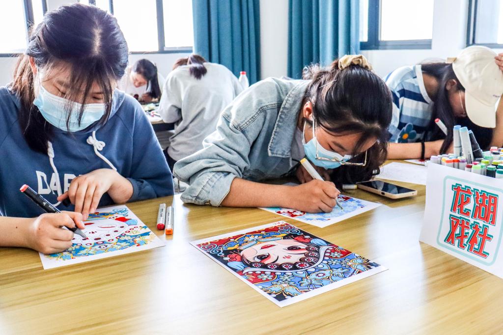上挑的眼角、细长的柳叶眉、精致的花钿妆……生物科学专业2021(7)班范文慧对自己绘画的Q版戏曲人物十分满意。“这可是我的专属‘花旦’。”她坦言,自己很早就来到活动现场,体验了许多项目,最后在戏曲绘画“落了脚”,一画便是两小时,“这些活动都很有意思,不仅给我‘补习’了戏曲知识,还能锻炼我的动手能力,看到我亲手配色的戏曲人物,心里真的是满满的成就感。”