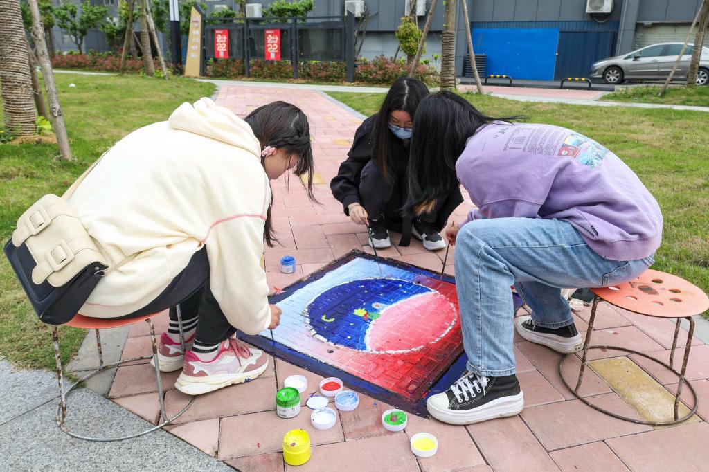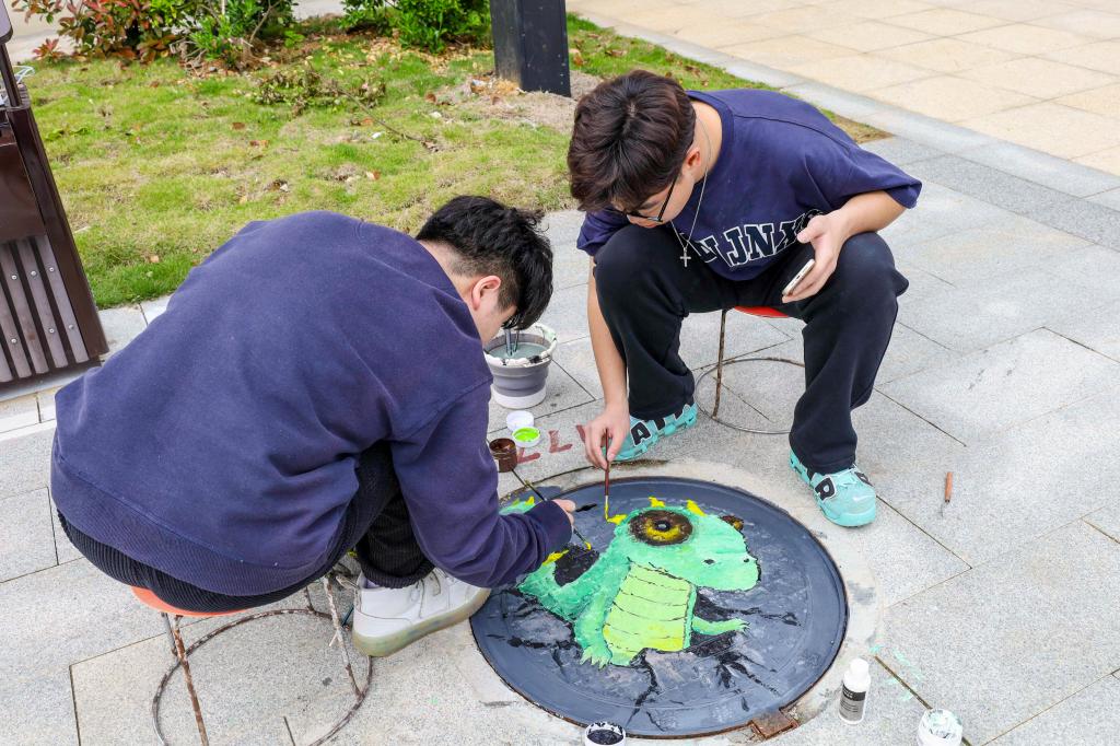 “早在半个月前,我们就开始为活动做准备。”动画专业2020级的蒋旭作为活动负责人介绍,从活动策划到材料采买,自己和团队多次商讨,力求做到“面面俱到”,“我们准备了充足的绘画材料,希望学生们都能积极参与其中,用创意井盖画为校园增添一抹靓丽的色彩。”