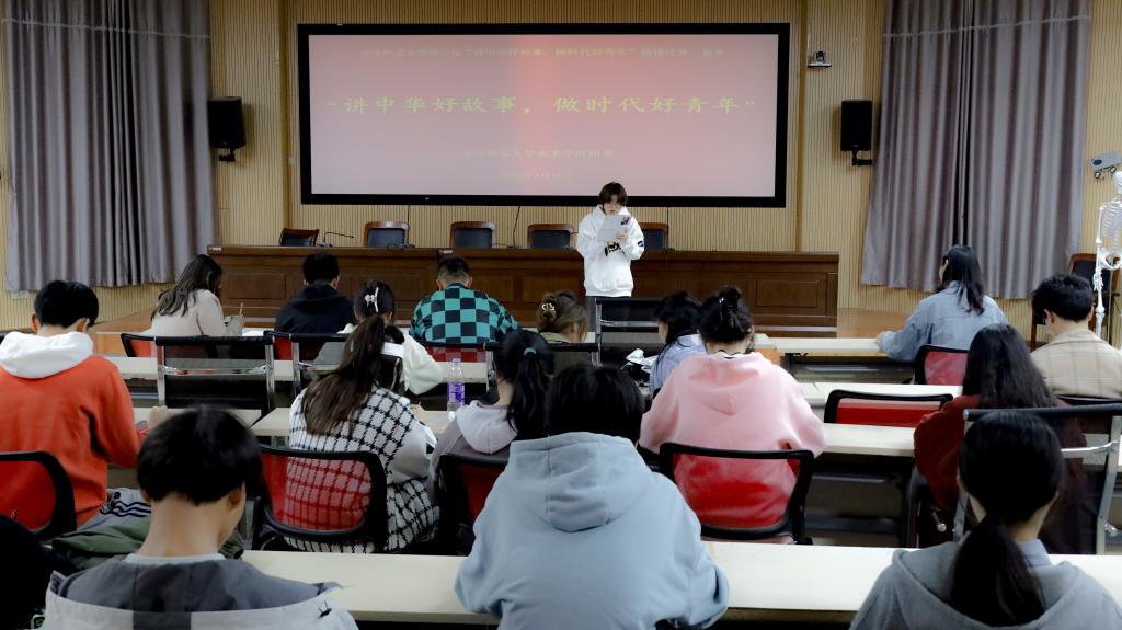4月15日,beat365在线体育官网登录入口在学术报告厅举办“讲中华好故事,做时代好青年”演讲比赛,学院孟莉、郝弘毅、陈浩然三位老师担任比赛评委,54名选手参加学院角逐。