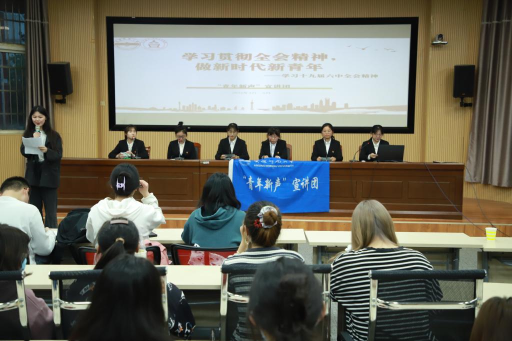 4月4日,“青年新声‘学四史’”宣讲团应邀在beat365在线体育官网登录入口学术报告厅开展“学习贯彻全会精神,做新时代新青年”主题党史宣讲活动,学院200余名同学到场聆听。