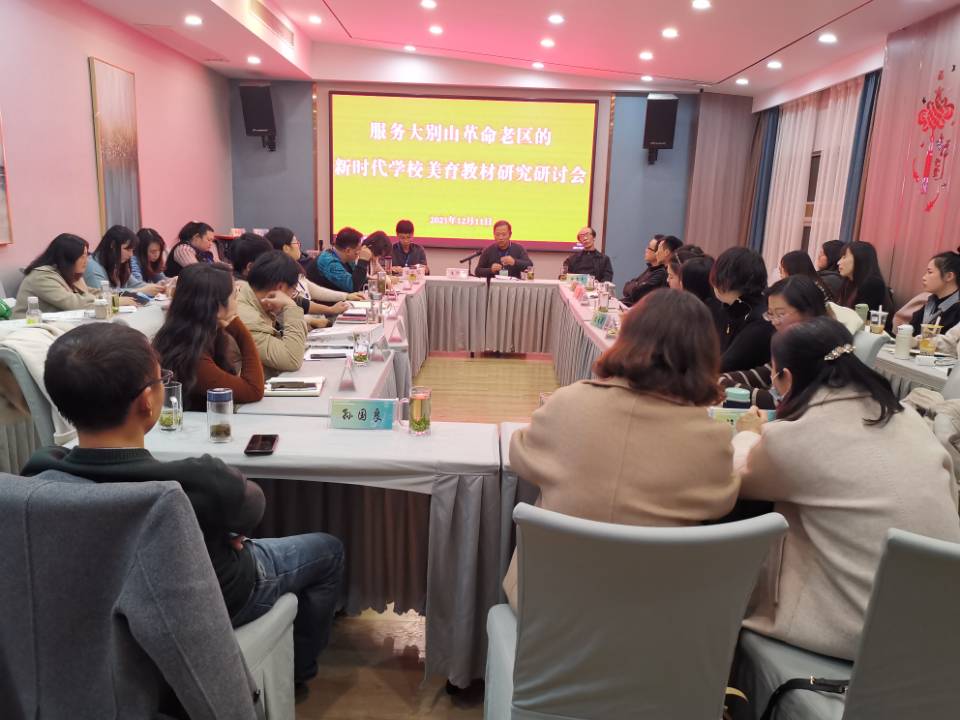 12月11日,由beat365在线体育官网登录入口主办的“服务大别山革命老区新时代学校美育教材研讨会”在安庆市美可居酒店举行,会议由院党委书记孙根华主持,来自安庆、铜陵两地的20位中高级美术教师、学科美术专业硕士研究生导师和研究生参加了研讨会。