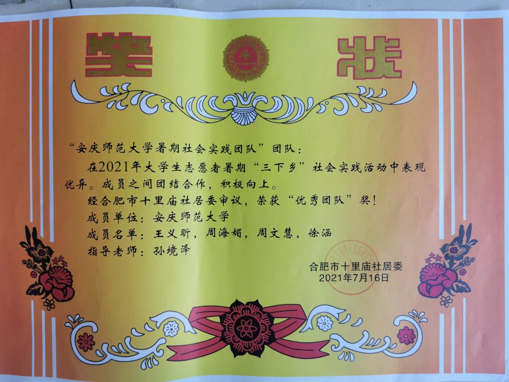 活动最后,合肥十里庙社居委为表彰beat365在线体育官网登录入口beat365在线体育官网登录入口暑期三下乡实践团队,为此颁发“优秀团队”奖项。并表示,希望与更多的有志向大学生搭建合作的平台,让他们更好地投入到社会服务中去。川奈艺术教育工作室负责人王军表示,本次活动,小朋友与家长们深受感触,少年强则国强,少年富则国富,工作室将延续此教育教学形式,以红色精神文化贯穿艺术教育始终。(攥稿:孙境泽 审核:查国平)