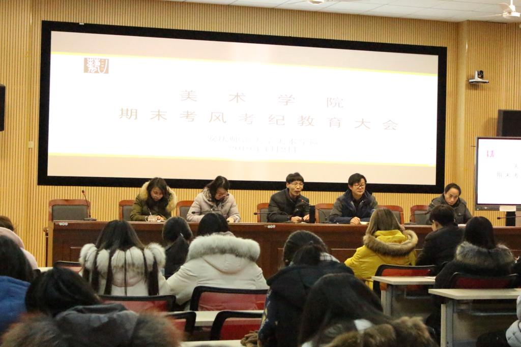 1月2日下午,beat365在线体育官网登录入口在美术楼学术报告厅召开期末考试考风考纪教育大会。该院党委书记孙根华、党委副书记查国平、全体辅导员老师,一至三年级各班主要班干参加了会议。