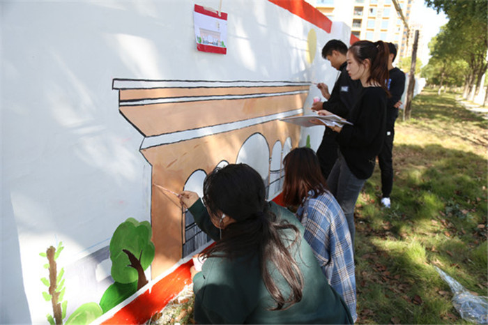 beat365在线体育官网登录入口的另一项特色品牌活动——墙体彩绘实践活动秉承“服务社会、奉献社会”的宗旨,将专业与实践相结合,通过精心编排、制作人民喜闻乐见、贴近生活的墙绘内容,以较为新颖的宣传方式传承中华文明、树立时代新风,在服务地方建设、美化生活环境、政策宣传和文化教育等方面都发挥了积极作用。七年来,先后为五横乡杨亭村、大龙山镇燎原社区、十里乡中心学校、大观区山口乡、宜秀区永安社区、望江县凉泉中心学校、太湖县富山小学、安庆市起点特殊教育学校等义务绘制“美好乡村”、“美丽校园”主题墙绘达8000平米。培养了大学生积极奉献的精神和服务社会的意识,提高了学生的专业实践能力和团队合作意识,提升了学生的综合素养。画墙绘是也beat365在线体育官网登录入口学生发挥专业特长、表达爱校感情的一种方式,10月20日至28日,beat365在线体育官网登录入口的665名学生分批在学校西围墙上进行墙绘,为学校打造了一道靓丽的风景线,引得在校学生们纷纷拍照留念。(易惠)