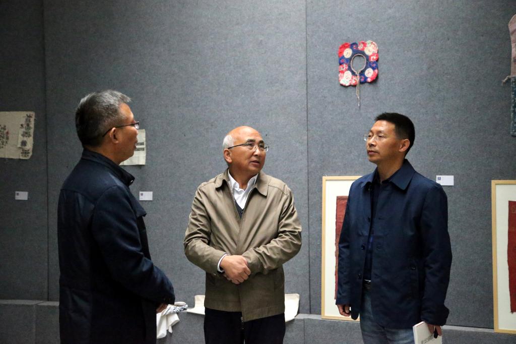 (图片说明:市人大常委会副主任童学军和校党委常委、副校长汪时珍教授参观望江挑花作品展)