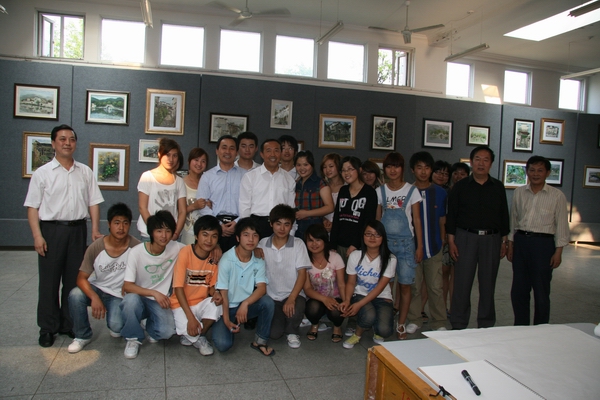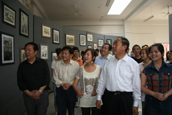 5月15日下午,安徽省委副书记王明方、安庆市委书记朱读稳,在学校全体党政领导的陪同下,兴致勃勃地观看了beat3652008级美术学专业皖南写生习作展,并愉快地与师生合影留念。