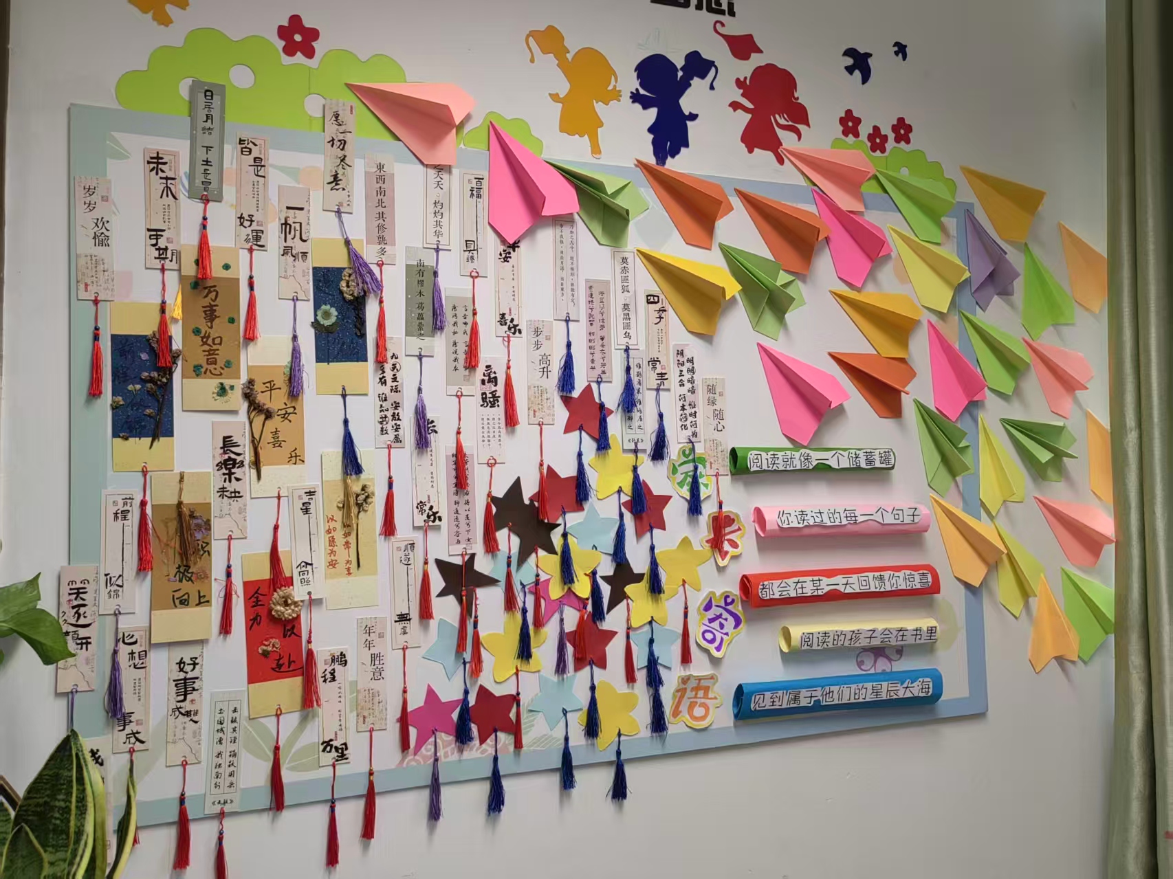 五彩纸飞机悬于教室间,暖心祝福书签缀于展板上,梅兰竹菊国画装裱挂墙面,手工折扇拼贴成一片烂漫“花海”……10月22日,beat365在线体育官网登录入口“大学生你好艺术家创意美工坊”社团走进安庆四中太平寺校区710班级,以“诗画入墙,国画诗班”为主题开展活动。团队带领师生一同折纸塑形态、制签传心意,以创意为笔、巧思为墨,在动手中解锁传统文化新体验,为教室换上满溢韵味的“文化新装”。