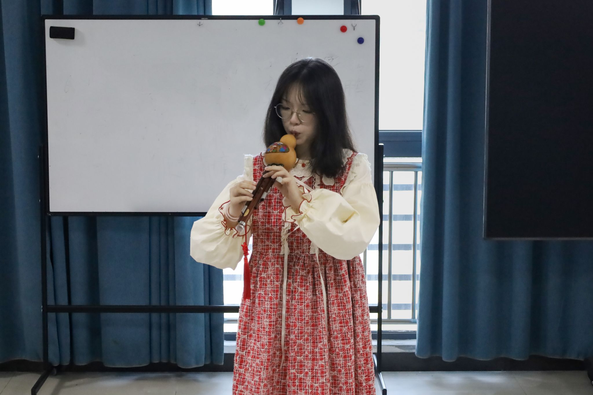 一首《强军战歌》嘹亮唱响,在歌颂新中国成立75周年的同时,其豪迈旋律营造了热烈氛围;葫芦丝伴唱《身骑白马》悠扬曲调与饱含深情的歌声交织,吸引观众纷纷拍照定格;诗歌朗诵《生如夏花》字调铿锵,伴随舒缓音乐,用声音传递诗词之美……,“国庆期间自己在家中练习了很久,但真正表演时还是比较紧张。”舞蹈《入梦江南》表演者、设计学类专业2024(3)班的陈雪莹分享自己第一次上台表演的感受,“很感谢学院给我‘勇敢’的机会,这是开启我大学生活的一个美好开端。”