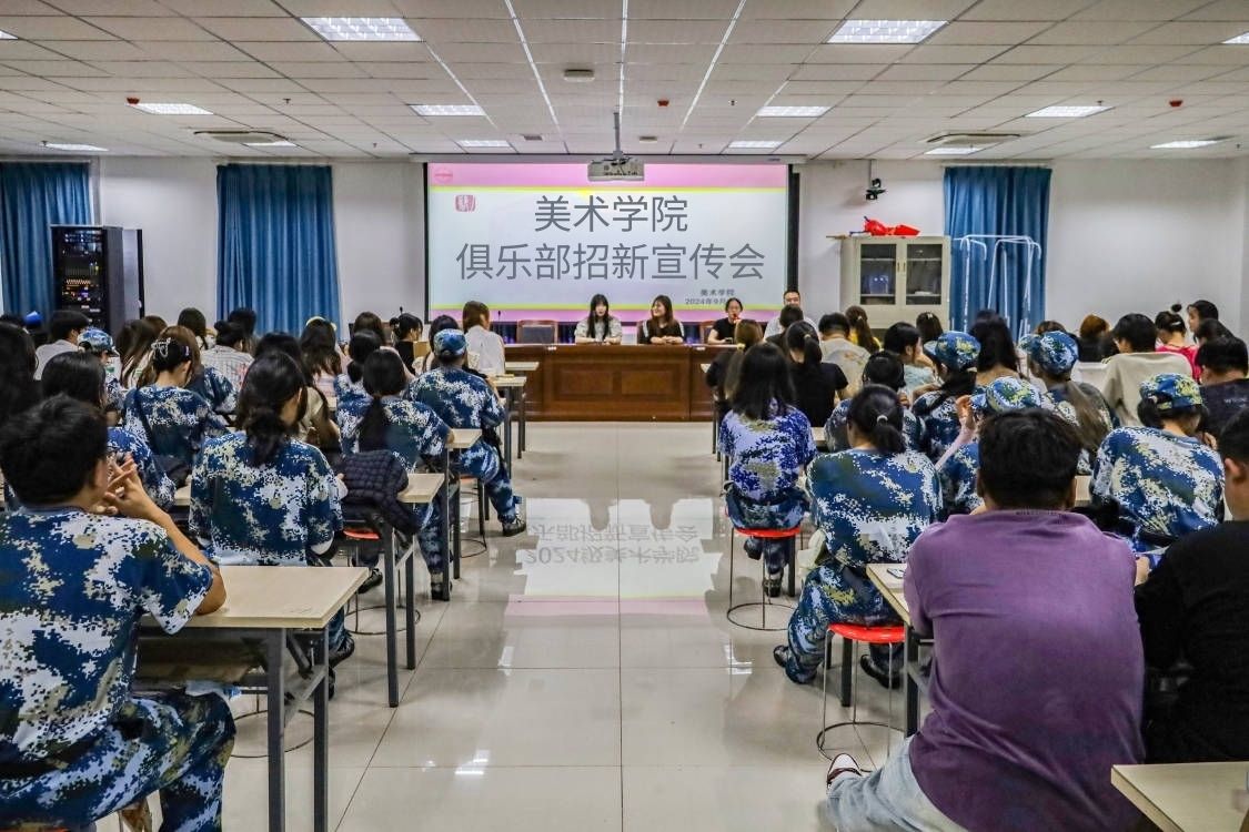 色彩缤纷的石塑黏土、别出心裁的动漫手稿、赏心悦目的缠花作品……近日,beat365在线体育官网登录入口11个艺术俱乐部优秀作品在教室里惊艳亮相,11名俱乐部学生负责人面向2024级190名新生进行招新宣讲,各具特色的艺术作品引得众多新生“跃跃欲试”。
