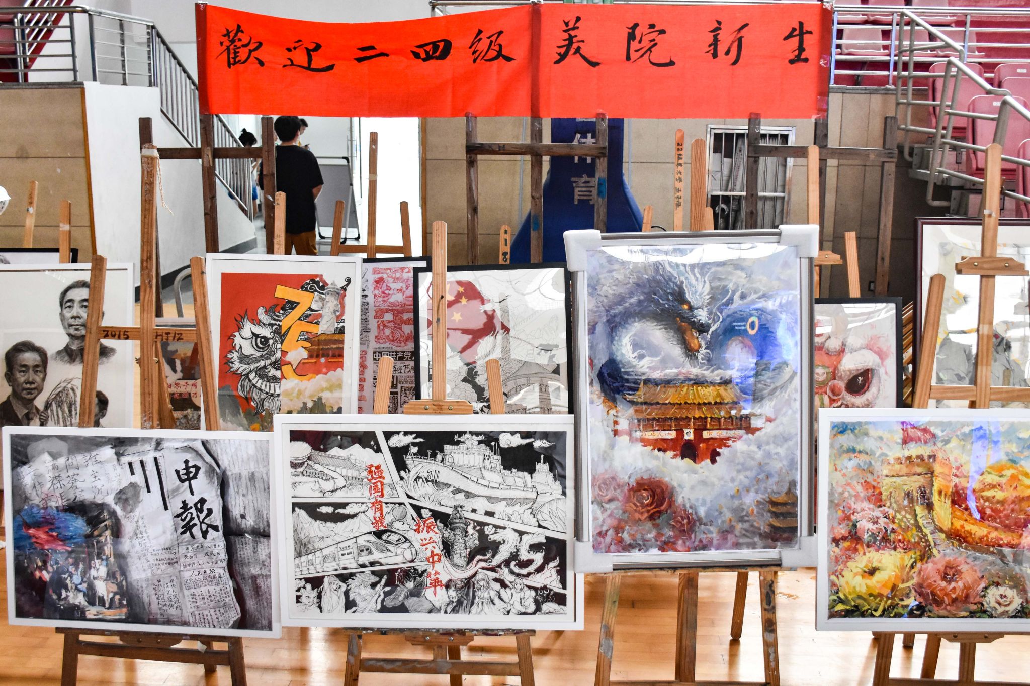 据悉,学院团委、学生会在暑期就早早地筹划了这次活动,发动全体新生进行主题创作。“我们希望用作品展的形式,让新生展现自我,同时让他们在假期也不忘锻炼画技。”本次活动负责人、设计学类2023(1)班董星辰直言。学院在每年开学季都会举办红色主题作品展,增强新生的爱国情怀,今后,学院将延续这一举办新生作品展的传统,在迎新之际为校园增添一份浓浓的艺术气息。(撰稿:学生记者 何源 叶子怡 摄影:学生记者 万悦 孙佳欣 审核:金忠良)