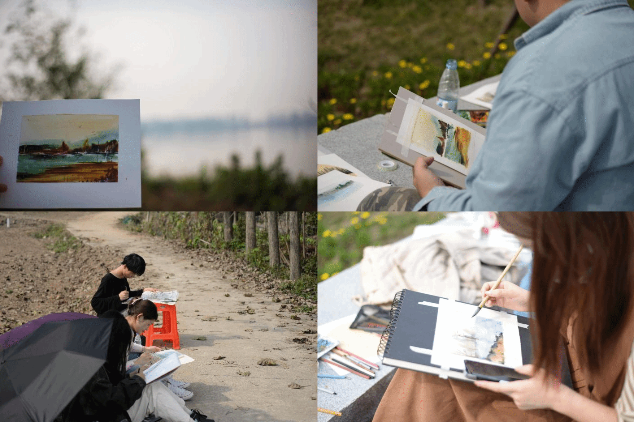 参与活动的师生在自然保护区进行采景与写生,对新洲乡实地观察后便以不同的形式开启“写生之旅”,用画笔描绘出新洲乡自然保护区的动植物与生态环境之美。