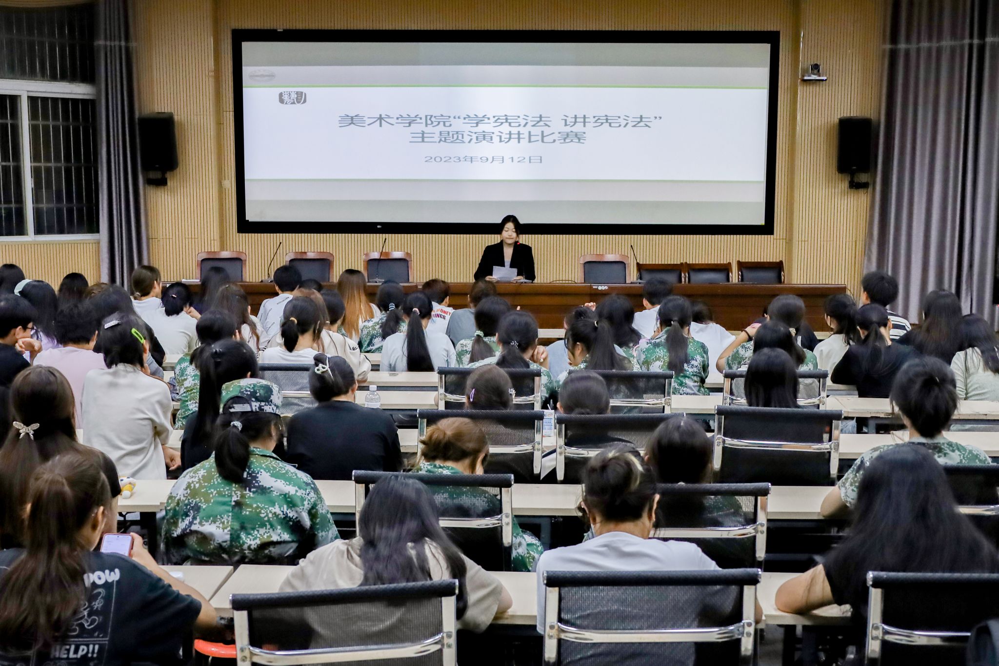 9月12日,beat365在线体育官网登录入口在该院学术报告厅举办“学宪法 讲宪法”主题演讲比赛,22名来自学院不同专业班级的选手参与比赛,200余名学生到场观看。