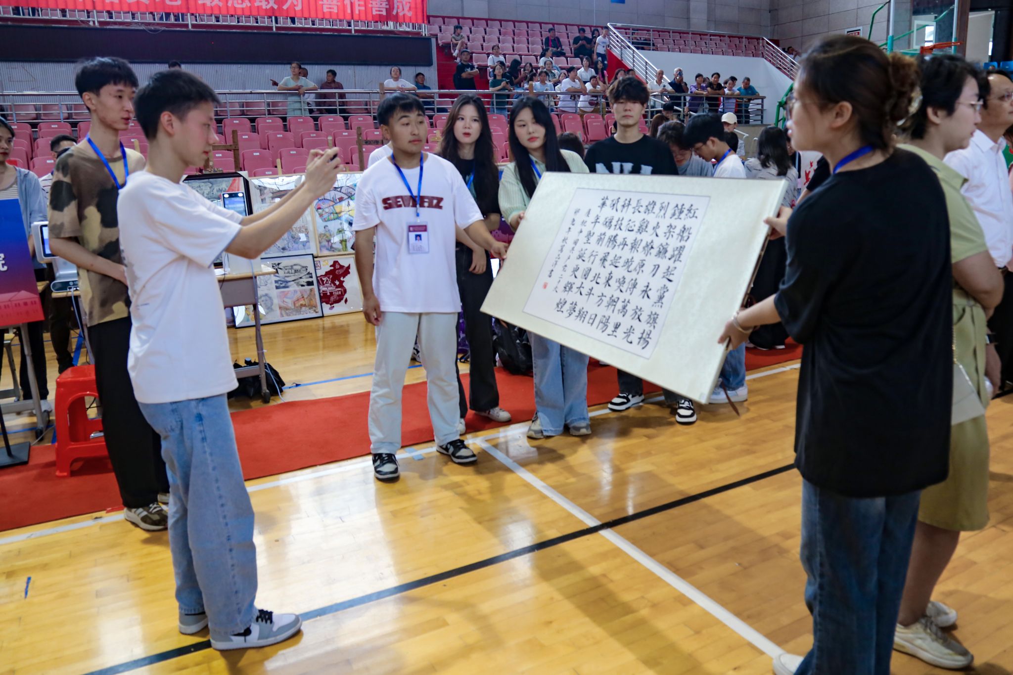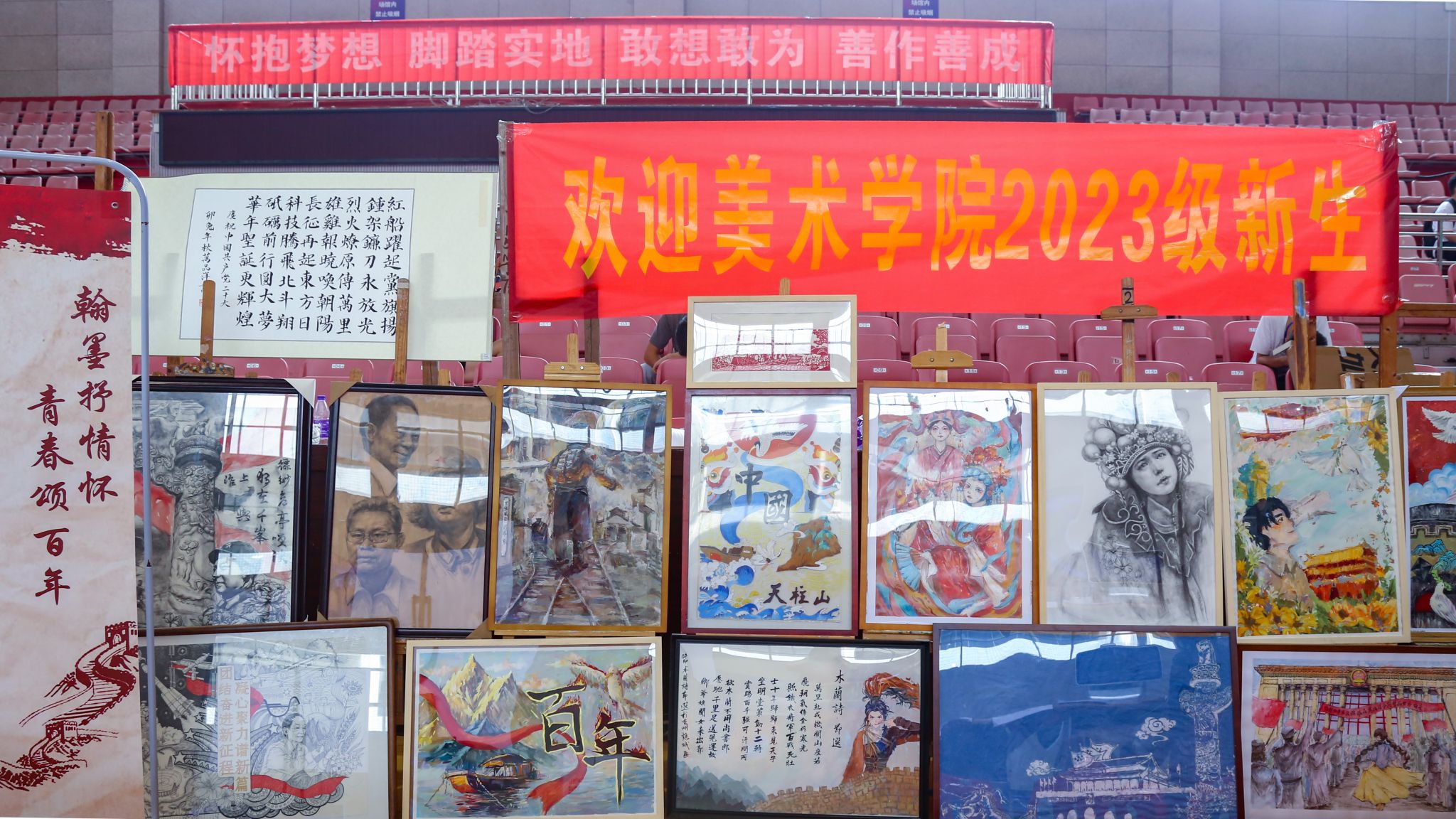 8月30日,随着beat365在线体育官网登录入口的新生们逐一报到,一场特殊的新生作品展也随之展开。每一位前来报到的新生手中,都拿着一幅以“翰墨抒情怀,青春颂百年”为主题创作的绘画作品,风格迥异、形式多样的作品在报到现场形成了一道靓丽的风景线,吸引了众多学生家长驻足观看。