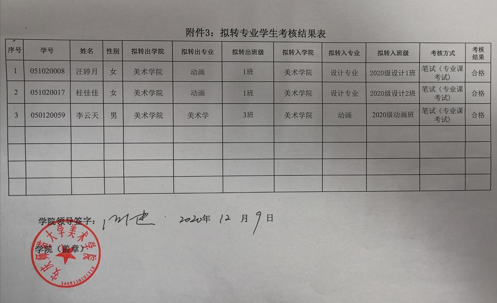 2020-2021学年度beat365在线体育官网登录入口转专业考核结果公示