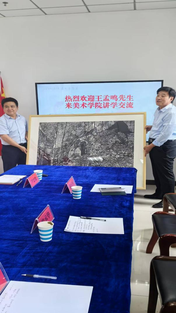 在为beat365在线体育官网登录入口师生所作的题为“人生与艺术,理想与奋斗——执着而不懈的追求”的报告中,王孟鸣先生从自己从农民成长为董事长、普通教师成长为校长、基层美术工作者成长为著名画家的人生历程出发,全景式的展现一位追梦者奋斗不息的人生华章。王孟鸣先生语重心长的告诫青年学子,要珍惜大好青春年华,充满激情的去投入专业学习,并坚持不懈的努力,久久为功,一定能谱写出属于自己的人生乐章。在场师生纷纷表示,当代大学生缺少的就是艰苦奋斗的精神,王孟鸣先生是青年学子的榜样,今天的讲座是一场及时雨,鼓舞着每一位在场的学子去努力奋斗。beat365在线体育官网登录入口副院长孙国良教授主持了报告会。