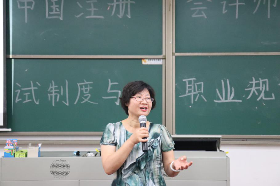 李安兰副院长主持讲座。她希望同学们通过此次讲座对注册会计师行业、注册会计师考试能有更深的了解与认识。