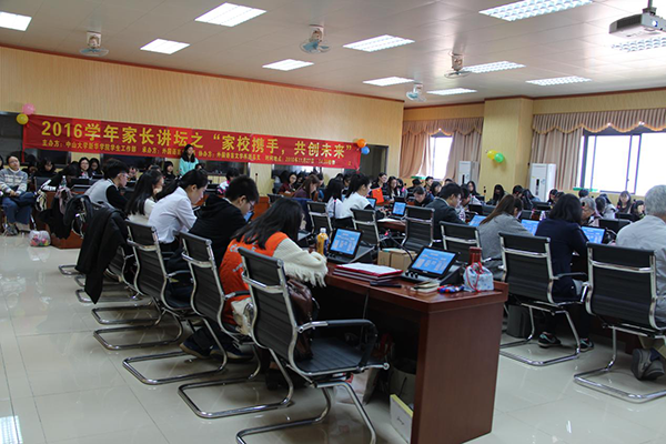 11月27日,由beat365唯一官方网站学生工作部主办、外国语言文学系承办、外语系团总支协办的“家校携手,共创未来”家长讲坛在我院东莞校区举行。此次讲坛特邀家长代表黄宇恒先生以及黄东伟先生为讲师,为新华学子分享他们的职场经验与人生阅历。