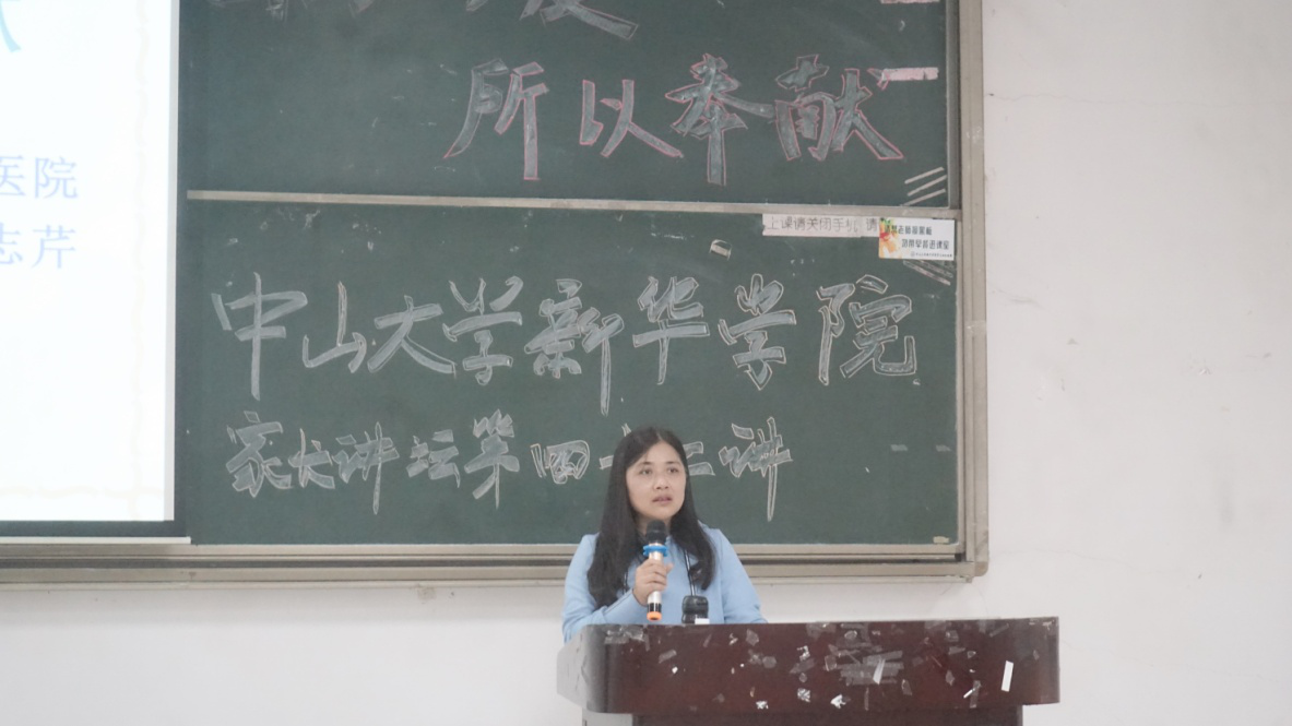 黄洛莹老师代表护理学院对麦志芹女士的到来表示热烈的欢迎和衷心的感谢,她向在场师生提出了“护理和护理工作的本质是什么?”深刻一问,为本次讲坛的主要内容埋下悬念。