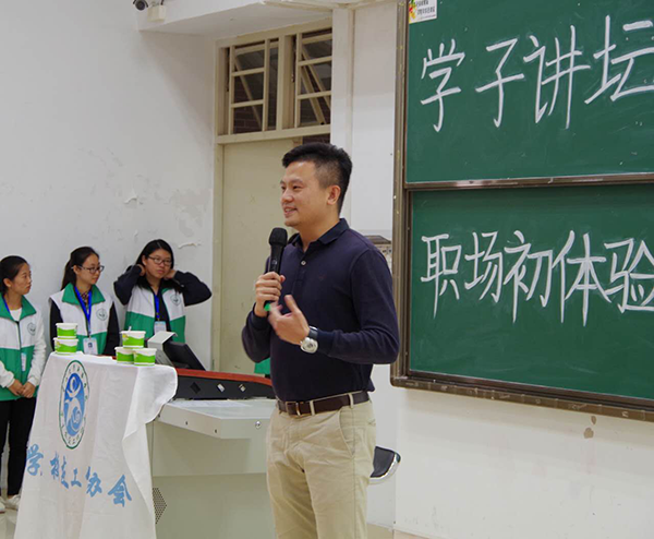 2012级毕业生古永生与同学们分享了他初入职场的经历,并举出了三个初入职场所需要多加注意的方面。一是提前了解在应聘工作时企业会选择怎样的员工,要有针对性地培养自身的能力与提高自身的思想品德高度;二是清楚在企业中,高层管理者会更青睐于怎样的员工,要学会培养个人基本技能,要有不急不躁,不计吃亏的付出精神;三是明确自身在家庭与职场的角色切换,既要踏实努力做好工作也要兼顾好家庭。