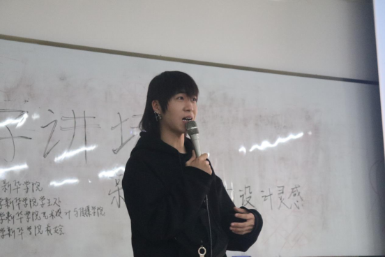 李基睿以“大学生活的灵感”为题开讲。专业理论知识固然重要,但是开阔自己的视野同样举足轻重。李基睿回忆在校时常去各地旅游领略风土人情,在沿途完成的作业得到了老师的高度认可。李基睿认为,融入社会前要学会独立思考,学会深入探究所遇到的问题的本质。在面临选择时,要勇于追求自己内心真正的想法。希望师弟师妹们可以明确自己的目标,大胆地去做自己热爱的事情。