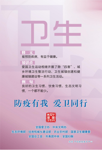 贯彻落实习近平总书记关于大力开展爱国卫生运动重要讲话精神,深刻认识爱国是核心、卫生是根本、运动是方式的爱国卫生运动内涵,全方位多层次推动爱国卫生运动。紧紧围绕第32个爱国卫生月“防疫有我,爱卫同行”活动主题,组织开展爱国卫生运动历史主题宣传活动,深入宣传爱国卫生运动68年走过的光辉历程,回顾各时期开展的除“四害”、改水改厕、五讲四美、卫生创建、环境整治、健康教育和健康促进等一系列富有成效的活动,重点展示十八大以来爱国卫生运动在预防和减少疾病、改善城乡环境卫生面貌、卫生城镇创建、提升人民群众文明素质等方面取得的成就,展望新时期爱国卫生运动的新发展,通过多维度、多元化、多层次的媒介载体和宣传手段,讲述爱国卫生运动历史,宣传爱国卫生运动意义,弘扬爱国卫生运动精神。