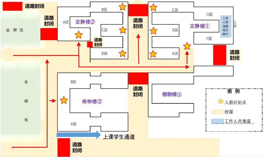 注意:所有考生必须通过人脸识别后,方可进入考试区域参加考试。人脸识别开始时间上午7:30、下午13:30,为避免拥堵,确保顺利进入所在考场,请考生合理安排入场时间。完成人脸识别进入考试区域后,不得再离开考试区域,请在考试区域内安心候场。进入考试区域较早的同学不得提前进入考试教室或者破坏门上的封条。如因未进行人脸识别无法正常参加考试造成考试成绩无效的后果,考生须自行承担。