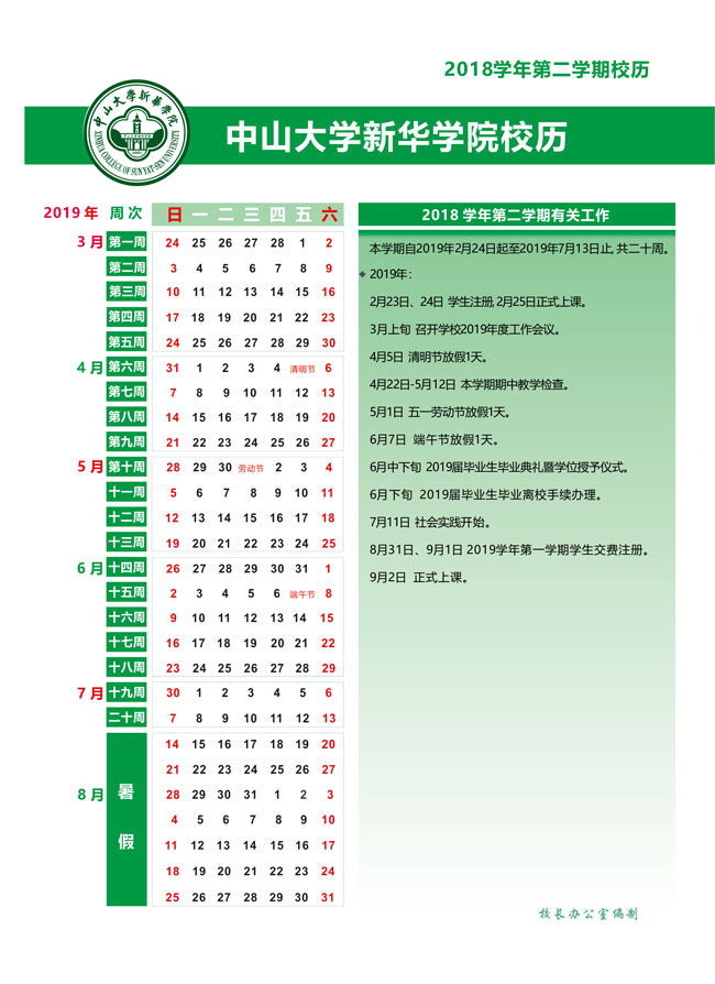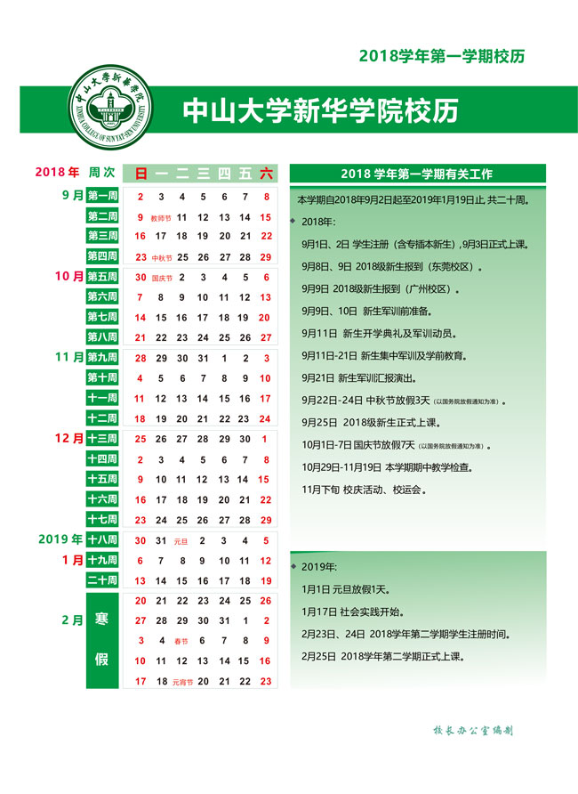 beat365唯一官方网站2018学年校历