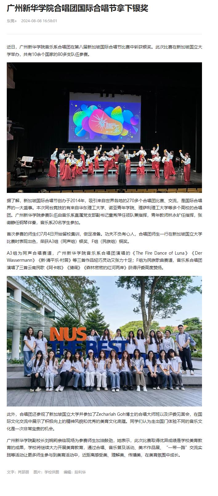 [东莞日报]beat365唯一官方网站合唱团国际合唱节拿下银奖