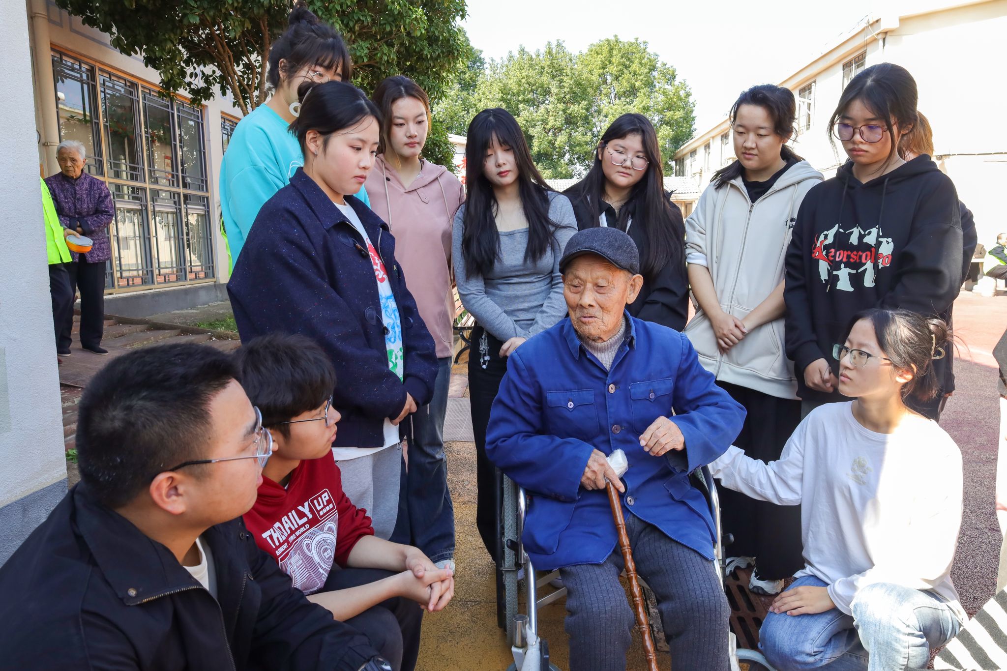 “今年是抗美援朝战争胜利70周年,此次敬老之行在弘扬传统美德的同时,将红色精神深植于学生心中。”学院党委副书记金忠良表示,学生们在重阳节“送温暖”的同时与抗美援朝老战士一同重温峥嵘岁月,感悟初心使命。希望学院学子不负韶华,砥砺前行,为成为担当民族复兴大任的时代接班人而奋斗,为祖国的繁荣昌贡献青春力量。(撰稿:罗佳琦 摄影:王优菲 审核:金忠良)