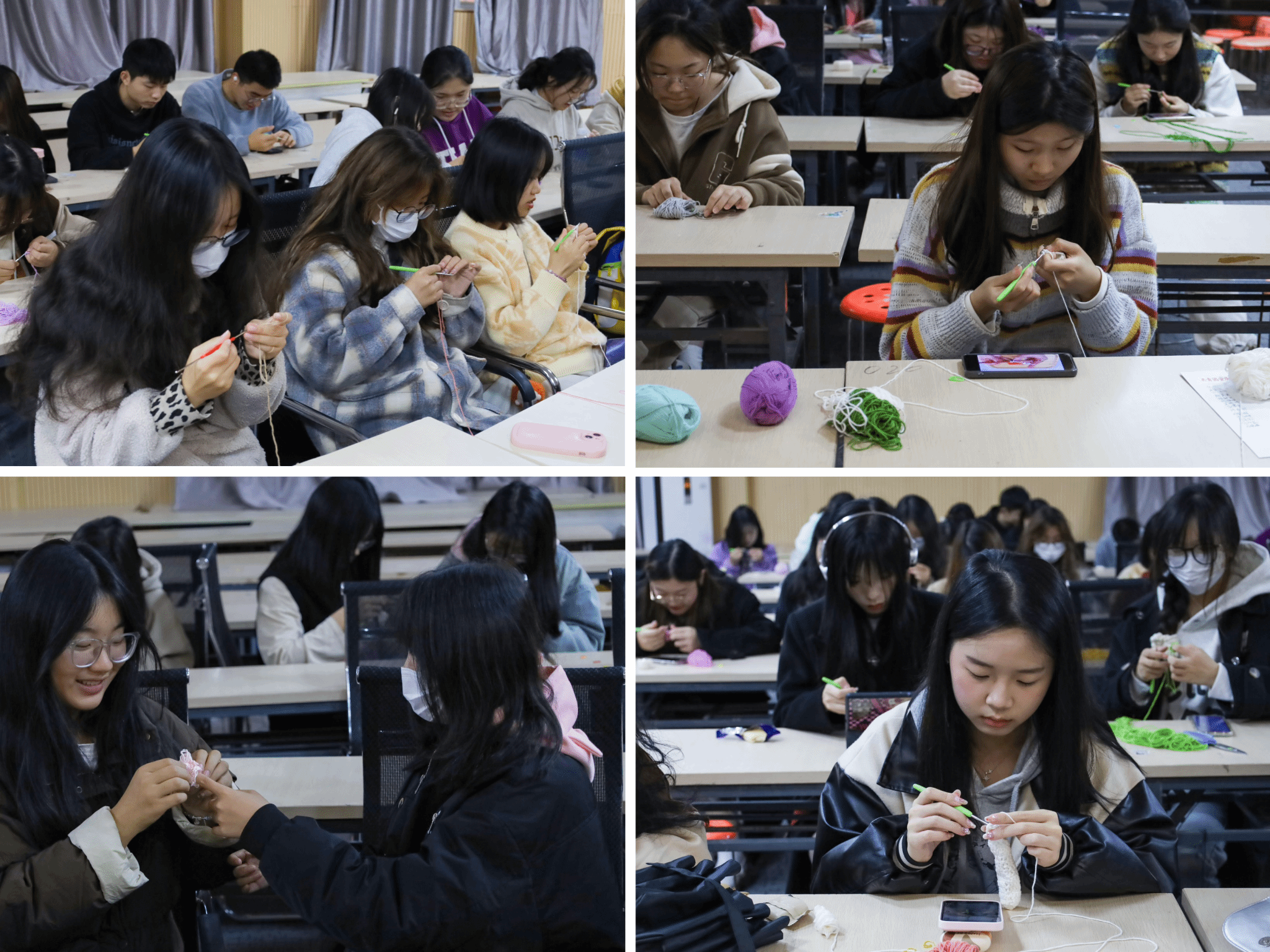 这个冬天,beat365在线体育官网登录入口的教学楼与往常有些不一样,几十个手工钩织的防寒门把手套被整整齐齐地套在教室的门把手上。11月11日,beat365在线体育官网登录入口开展“我为同学做件事——制作门把手保暖外套”志愿服务活动,50余名学子齐聚学院学术报告厅,用各色毛线钩织门把手“保暖外套”,为教室送上冬日温暖。