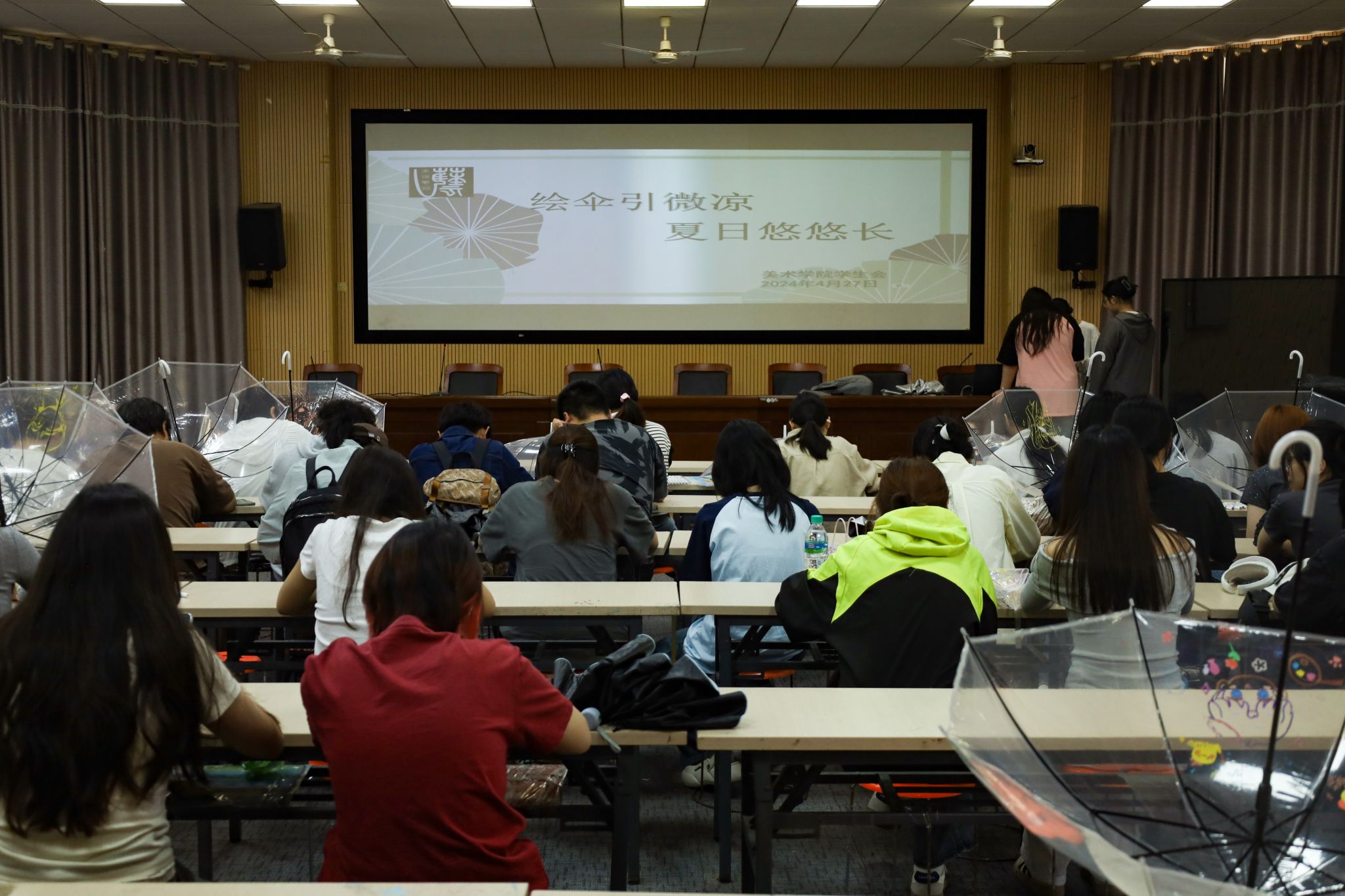 用丙烯颜料笔在伞面上勾画图案,铺色涂抹,撑伞风干,20余把结合了学生们“小巧思”的DIY透明雨伞便完成了。4月27日,beat365在线体育官网登录入口在学院学术报告厅开展“绘伞引微凉,悠悠夏日长”活动,70余名学生在互动交流中挥洒创意。