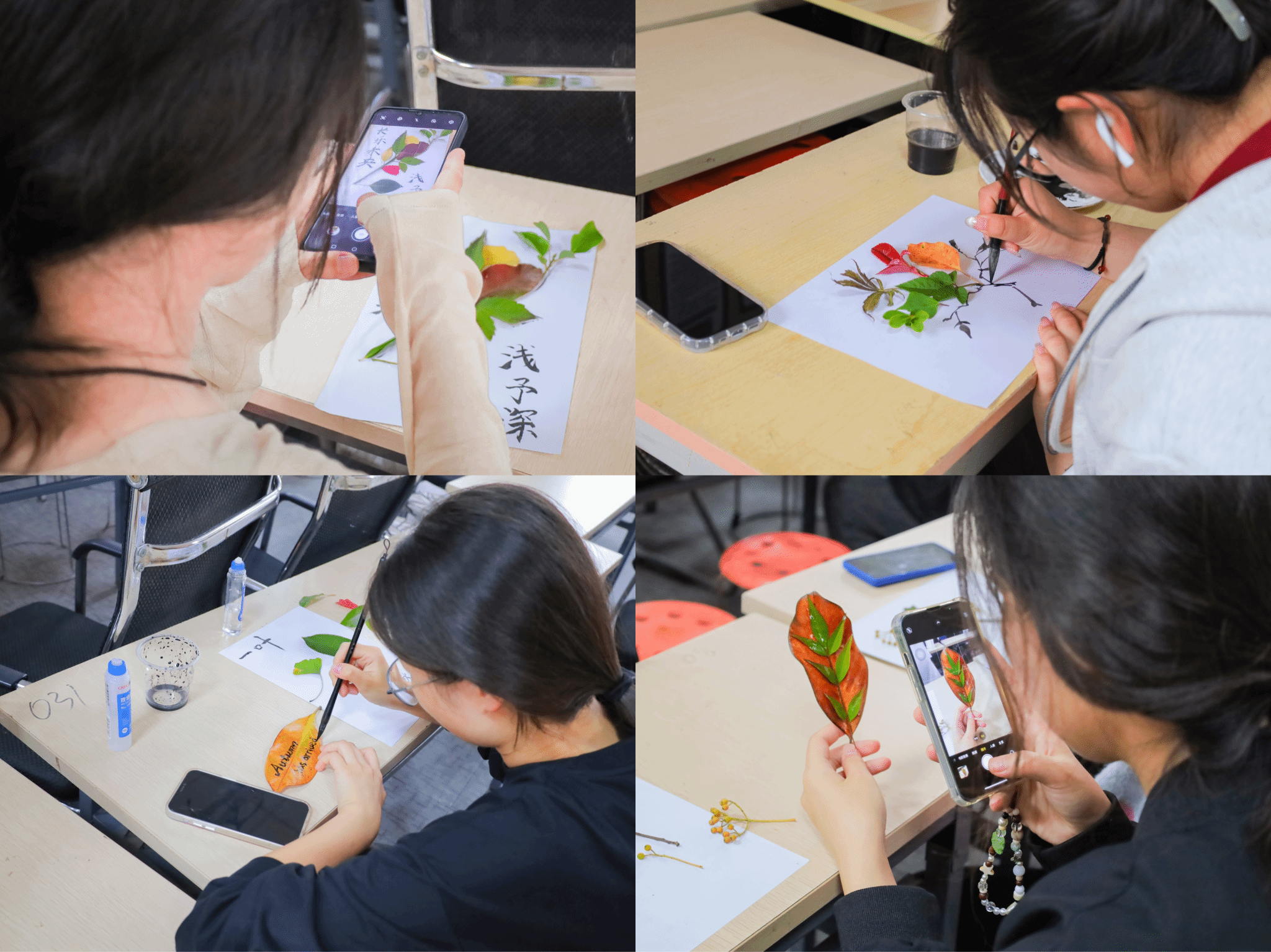 以枯叶碎片拼接而成的蝴蝶、用14片小银杏叶卷成的“黄玫瑰”、用松枝和灌木叶组成的松果……伴随着舒缓的钢琴曲,各学院学生将奇思妙想呈现于白纸上,使落叶在艺术创作中焕发生机。活动期间,400余份各有千秋的落叶创作“占据”了学生们的社交平台主页,不少学生称自己的作品为“落叶再生计划”。