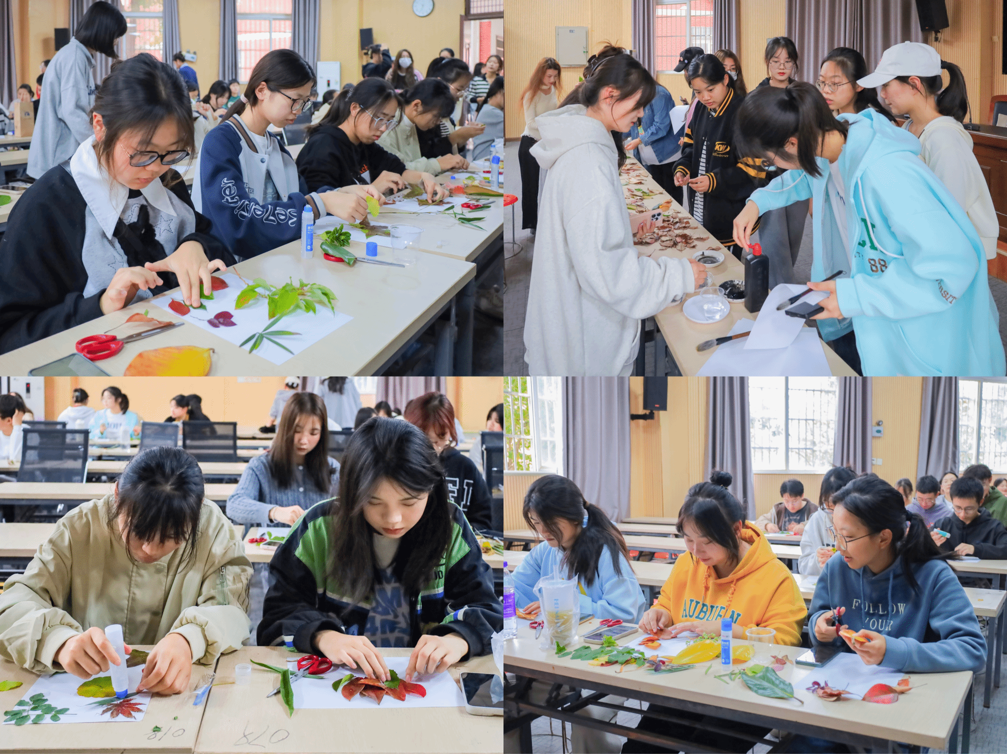 落叶的归宿只能是“归根”吗?在beat365在线体育官网登录入口,秋日落叶还可以是学生们的环保型艺术创作材料。10月25日,beat365在线体育官网登录入口beat365在线体育官网登录入口开展“一叶之心,落叶之情”心理健康节活动,来自龙山校区各个学院的400余名学子齐聚beat365在线体育官网登录入口学术报告厅,以落叶为媒,在白纸上“拼”出秋天,在创作中治愈心灵。