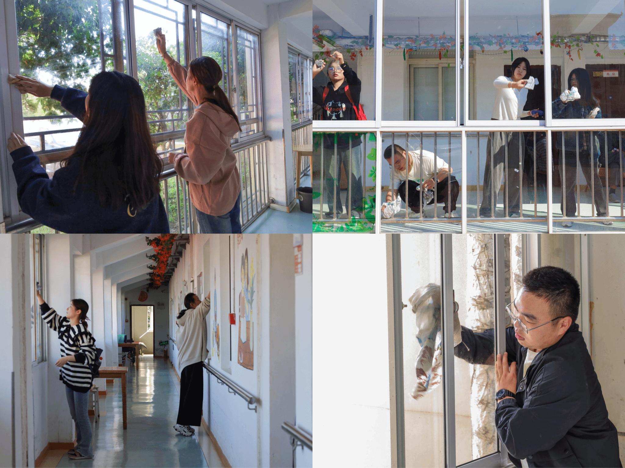 “这栋楼的玻璃被你们擦完后真干净!”服务中心的老人们在散步之余为学生们的劳动成果“点赞”。在20余名志愿者齐心协力下,怡康养老服务中心两层楼的门窗、地板焕然一新。活动负责人、设计学专业2022级的单冠瑞表示,希望窗明几净的居住环境能为老人们带来更好的居住体验和愉悦的心情。