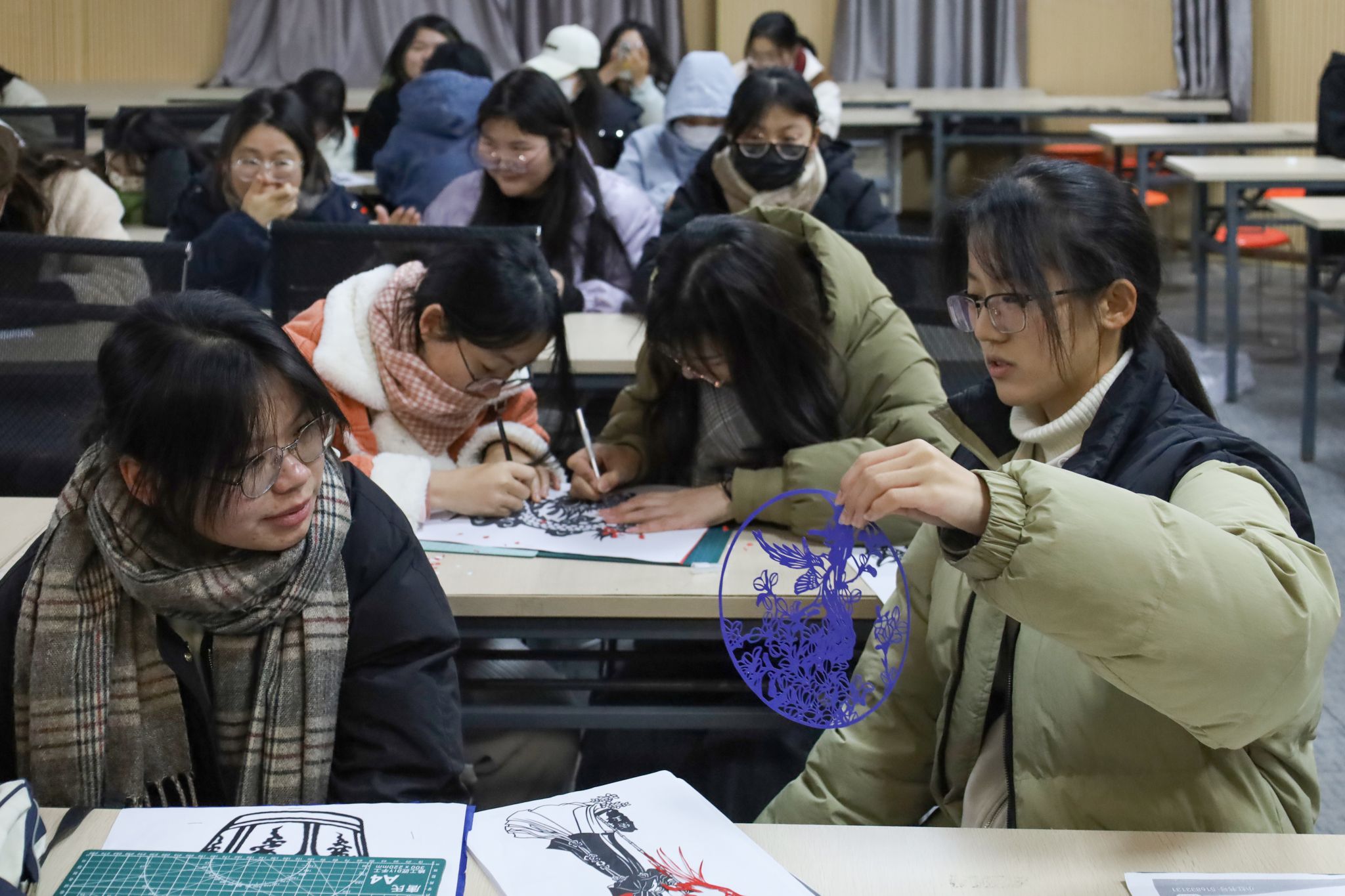 beat365在线体育官网登录入口剪纸俱乐部创建于2018年,一直以来采用“传帮带”的形式,每周开设一次课程,每学期定期举办剪纸体验活动,让非遗剪纸文化一届届传承下去,为学校“湖畔艺术节”等艺术展览与公益义卖提供了众多剪纸艺术品。该院党委副书记金忠良表示,主题剪纸活动能让学生们在动手的过程中体验中国龙纹的美学魅力,希望非遗剪纸艺术“生活化”能让非遗文化的种子在校园的土壤生根发芽,创新美育在校园的传播模式,让更多大学生和非遗剪纸蕴含的审美内涵“相遇”。(撰稿:学生记者 罗佳琦 摄影:学生记者 王优菲 李武 审核:金忠良)