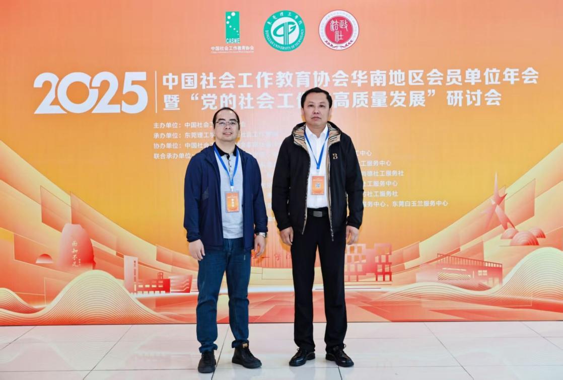 10月25日,中国社会工作教育协会2025年华南地区年会暨“党的社会工作与高质量发展”研讨会在东莞理工学院举行。beat365唯一官方网站公共治理学院党总支书记王光辉副教授、教工党支部委员黄远清博士应邀参会。