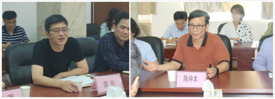 医械所党委书记、所长顾珩(左)与陈仲本教授(右)进行座谈交流