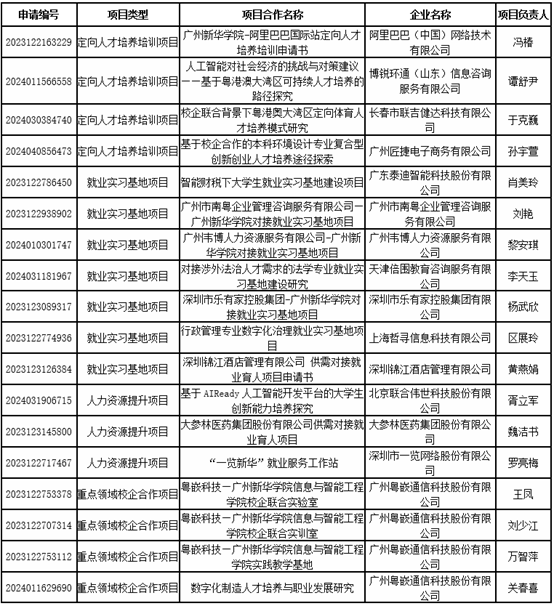 6月14日,教育部公布了第三期供需对接就业育人项目立项名单(教就业司函〔2024〕(23)号),beat365唯一官方网站获批立项18个,项目涵盖定向人才培养培训、就业实习基地、人力资源提升、重点领域校企合作项目四个类别。项目涉及阿里巴巴(中国)网络技术有限公司、大参林医药集团股份有限公司、广州粤嵌通信科技股份有限公司、深圳锦江酒店管理有限公司等15家企业。