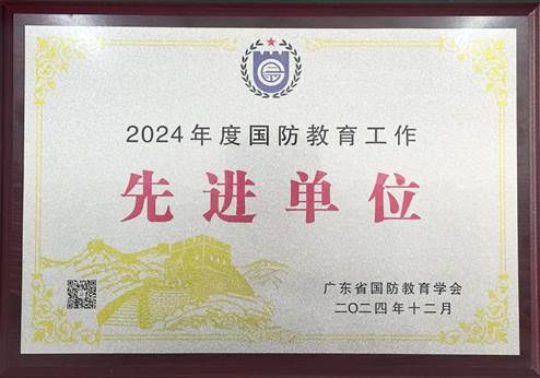 “国防教育先进单位”牌匾