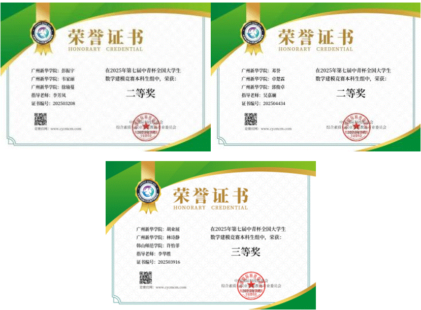 广州新华学子在第七届“中青杯”全国大学生数学建模竞赛中斩获佳绩