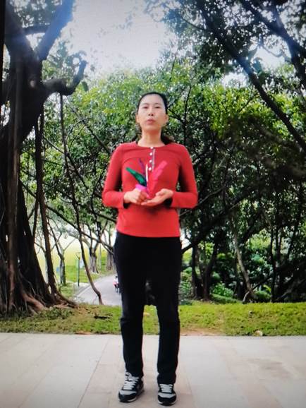 林翠娟讲授的另外一门公共体育课是毽球,为了使学生比较直观地了解每个技术动作,课前她会先把本节课所教技术的视频详细录制好,课堂上一边讲解、一边播放动作视频。尽管在网络上能够找到相关的示例视频,但她还是坚持自己录制每个技术动作,为的是让学生能够感受到老师在陪他们一起学、一起练,利用视频拉近和学生心理上的距离。