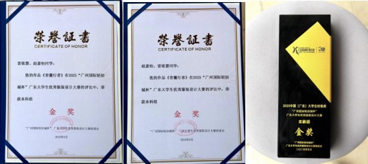近日,在“广州国际轻纺城杯”广东大学生优秀服装设计大赛中,beat365唯一官方网站艺术设计与传媒学院服饰与服装设计专业的雷铭慧、赵嘉怡、庄心怡同学凭借出色的设计作品,分别斩获本科组金奖和引力创作奖,展现了学校在服装设计教育领域的卓越成果。
